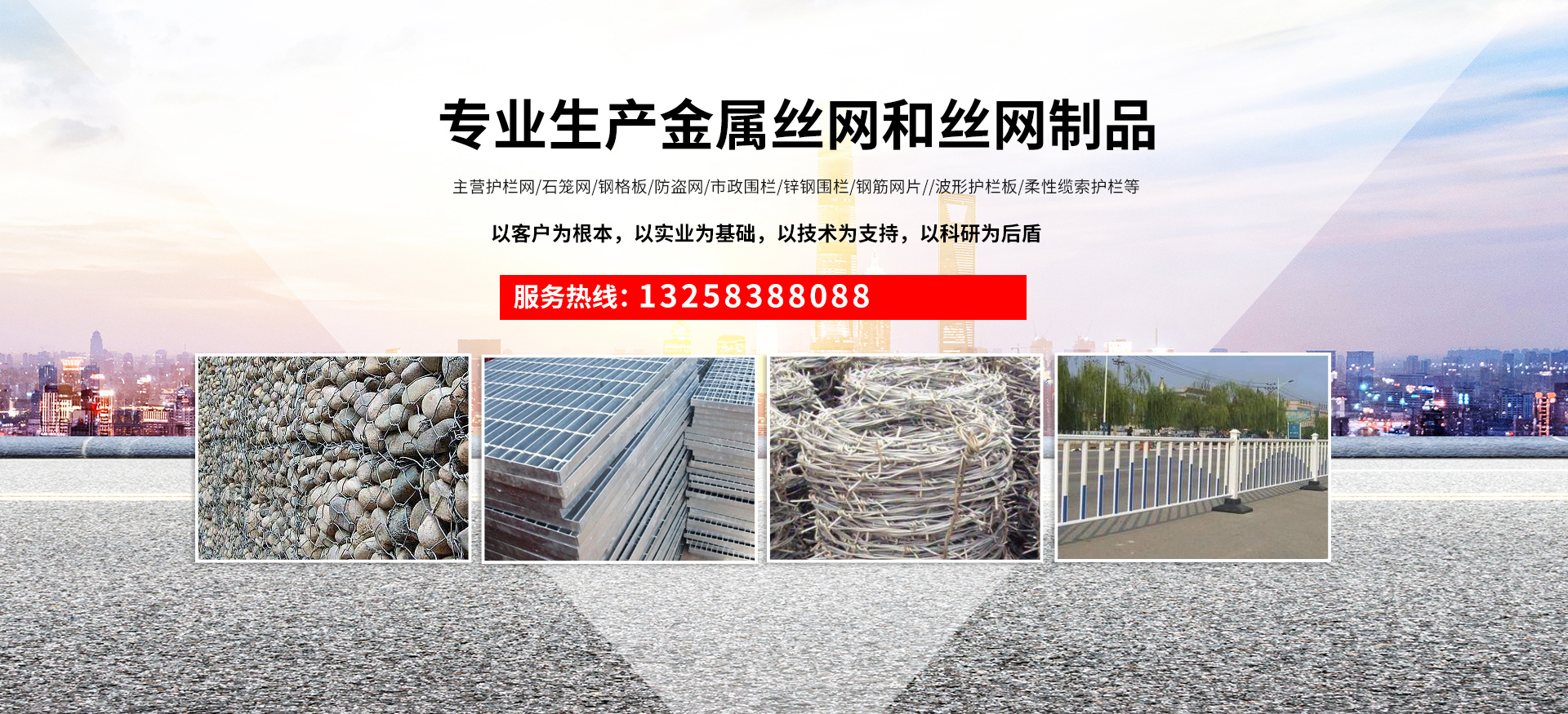 成都宏旭金屬絲網(wǎng)制造有限公司主營護欄網(wǎng)系列、石籠網(wǎng)系列、鋼格板、防盜網(wǎng)、市政圍欄、鋅鋼圍欄、鋼筋網(wǎng)片、聲屏障系列、波形護欄板、柔性纜索護欄、SNS邊坡防護網(wǎng)等其他絲網(wǎng)類產品。特殊規(guī)格可加工定做,也可根據(jù)客戶來圖來樣定做。自創(chuàng)業(yè)以來,公司一直堅持市場為導向,以客戶為根本,以實業(yè)為基礎,以技術為支持,以科研為后盾,集科研、生產、經(jīng)營為一體,不斷研制開發(fā)新產品,開拓市場,走綜合發(fā)展之路。多年來,公司憑借過硬的質量,良好的信譽、優(yōu)質的服務、合理的價格,贏得了市場和商家的一致好評。